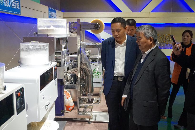 譚建榮院士來公司主要幫助解決兩個問題:1. 幫助萬杰解決高端智能機器人應用于主食裝備2.馬鈴薯主食產業化生產線智能化升級。在聽取王曉杰董事長的介紹和匯報后,譚建榮勉勵企業要加大新產品的研發力度,發揮產業優勢,打造叫得響的品牌。