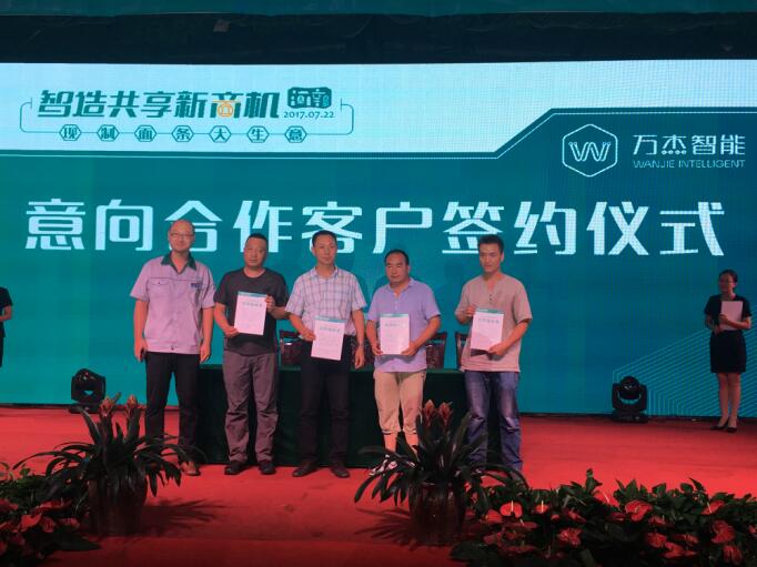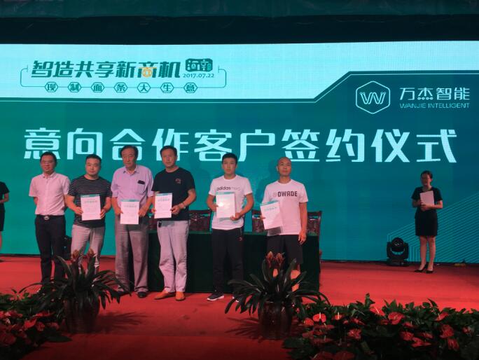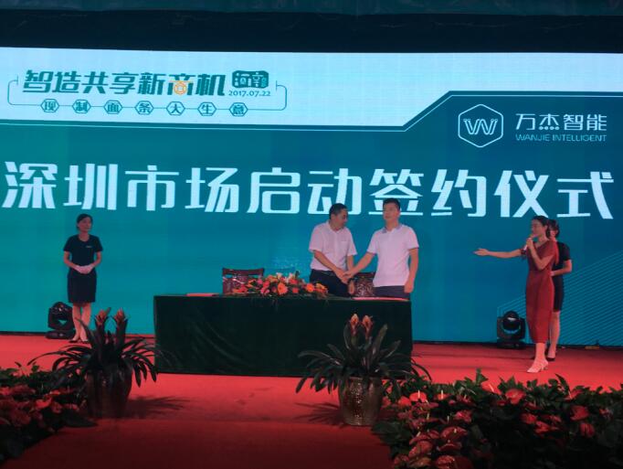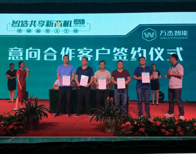 晚宴即將開始時(shí),仍然有很多意向合伙人想要加入萬(wàn)杰智能鮮面機(jī)項(xiàng)目中來(lái),會(huì)務(wù)組因此臨時(shí)調(diào)整會(huì)議流程,推遲晚宴開始時(shí)間,為意向合伙人留出更多簽約時(shí)間,最終,萬(wàn)杰智能成功與30余位意向合伙人簽署了意向合作書。 萬(wàn)杰智能與中視能量(央視一級(jí)服務(wù)商)簽訂戰(zhàn)略合作協(xié)議 萬(wàn)杰智能深圳市場(chǎng)正式啟動(dòng)儀式 城市合伙人簽約儀式