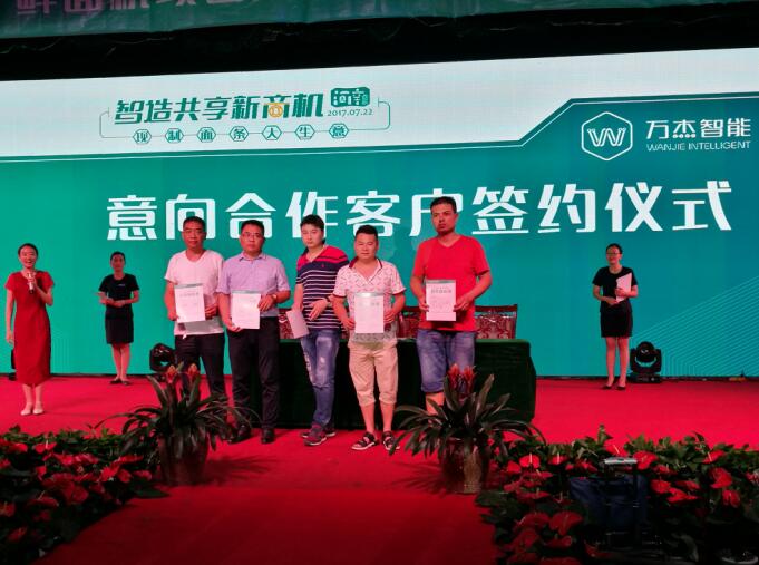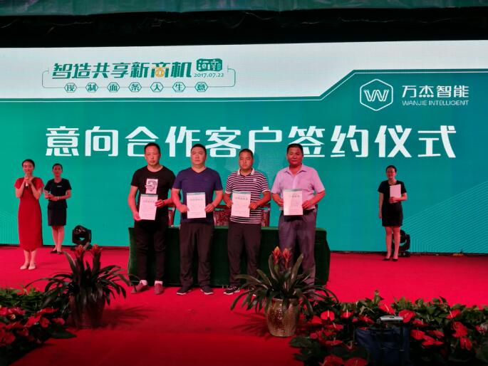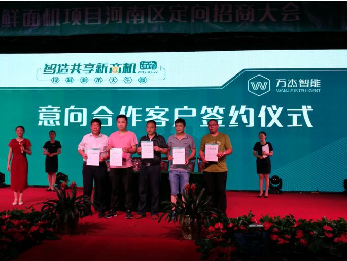 7月22日,智造共享新商機(jī),萬(wàn)杰智能鮮面機(jī)河南大區(qū)定向招商大會(huì)在許昌成功落下帷幕。超過70家意向合伙人(170余人)齊聚本次招募大會(huì),當(dāng)天有30余家意向合伙人簽訂合作意向書。